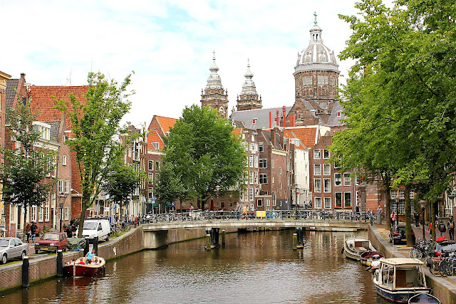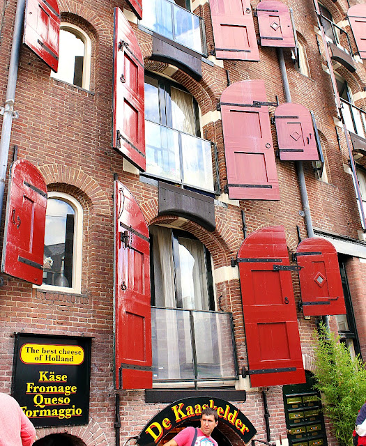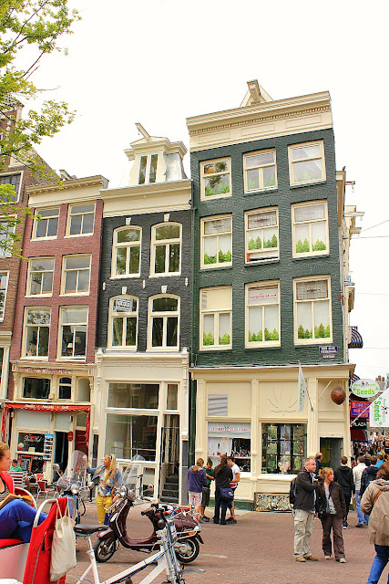 These are a few of my favorite leaning houses. Some also lean out over the street. Many of the houses, mansions and public buildings in Amsterdam are built along the canals. Since Amsterdam is located on a marshland, most of these houses rest on long wooden beams made from entire trees 13 to 20 meters long. These wooden beams are buried deep into the marshy subsoil and kept under water to avoid rotting. Nowadays, they use concrete beams. Doesn't it remind you much of the city of Venice?