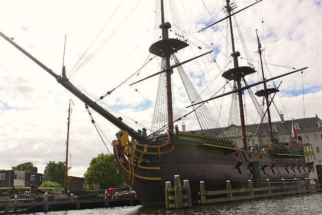 This replica of the VOC Ship is found next to the Maritime Museum (behind). The VOC ship was an 18th century cargo ship used by the Dutch for trading goods in the East Indies. The real Amsterdam VOC ship or what's left of it lies submerged in the mud and sand in the bay of Bulverhythe in East Sussex, England. They say you can see a bit of the shipwreck on low tide.